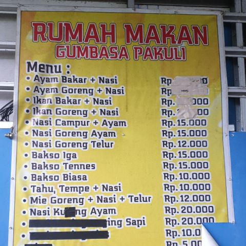 Rumah Makan Gumbasa Pakuli Menyediakan berbagai menu makanan